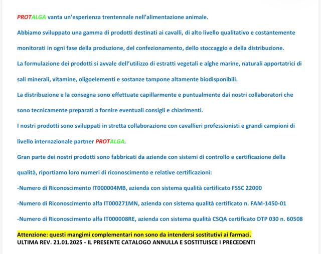 Ciao! Sono Elga di Cafero Commerce, sono in collaborazione con Protalga srl, qui potrai interagire con noi per una giusta scelta un'ampia gamma di integratori e mangimi anche personalizzabili, per il benessere del tuo cavallo!
