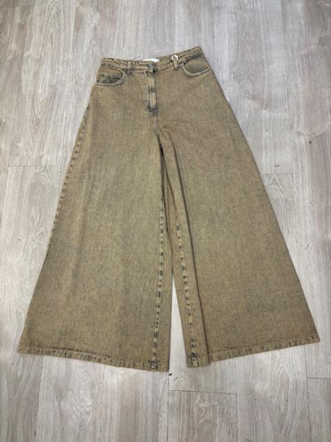 JEANS MODELLO PALAZZO CON GAMBA AMPIA CHIUSURA TRAMITE BOTTONE E CERNIERA IN COLOR CAMMELLO SLAVATO.