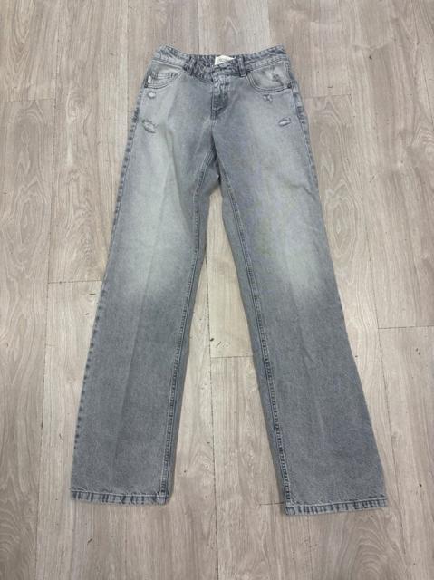 JEANS CON GAMBA DRITTA E VITA BASSA .CHIUSURA CON BOTTONE E ZIP. COLORE DENIM GRIGIO .