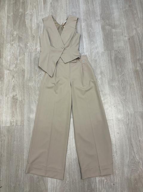 PANTALONE MODELLO PALAZZO CON GAMBA AMPIA E RISVOLTO .ABBINA IL GILET NEL MEDESIMO TESSUTO E COLORE.