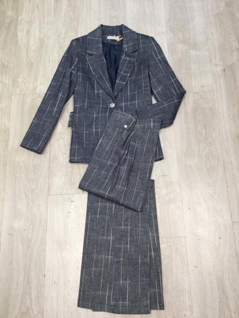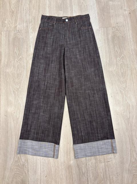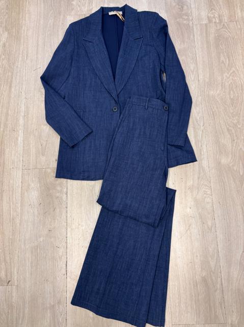 PANTALONE MODELLO PALAZZO CON CHIUSURA TRAMITE CERNIERA LATERALE IN DENIM DI COTONE. ABBINA IL BLAZER NEL MEDESIMO TESSUTO E COLORE.