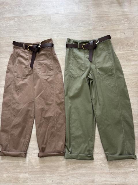 PANTALONE IN COTONE MODELLO BALLON CON CINTURINA REMOVIBILE. FANTASIA FLOREALE SUI TONI DEL VERDE,GIALLO SU FONDO BIANCO.
