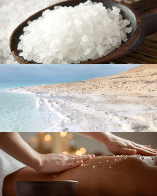 Con preziosi sali del Mar Morto, sali di Epson e oli essenziali.Drenante ed esfoliante in un unico gesto.
